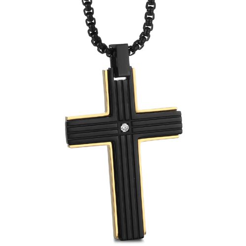 **COI Titanium Black Gold Tone Cross Pendant With Cubic Zirconia-8970BB