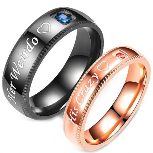 **COI Titanium Black/Rose Her Weirdo/His Crazy Ring With Cubic Zirconia-6964AA