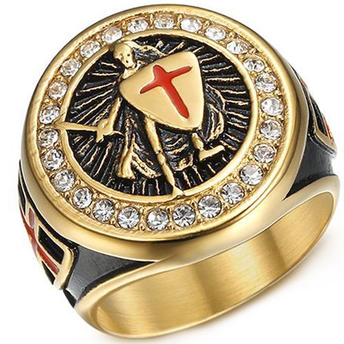 COI Titanium Gold Tone Black Red Vintage Templar Ring With Cross. Comfort fit with inside round shank. A 100% tailor-made ring for you. Classic with delicated details, unsurpassed quality plus incredible value! Perfect as a wedding band, engagement ring or just for everyday wear due to its extreme comfort!.