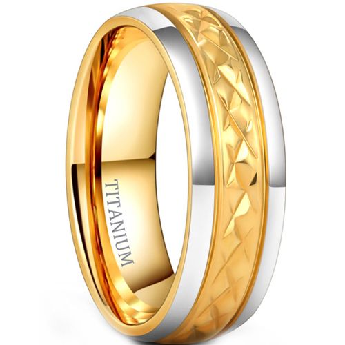 COI Titanium Gold Tone Silver Grooves Ring. Comfort fit with inside round shank. A 100% tailor-made ring for you. Classic with delicated details, unsurpassed quality plus incredible value! Perfect as a wedding band, engagement ring or just for everyday wear due to its extreme comfort!