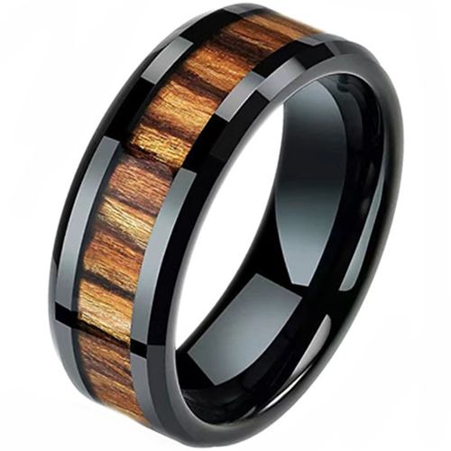 COI Black Titanium Beveled Edges Ring With Zebra Wood. Comfort fit with inside round shank. A 100% tailor-made ring for you. Classic with delicated details, unsurpassed quality plus incredible value! Perfect as a wedding band, engagement ring or just for everyday wear due to its extreme comfort!